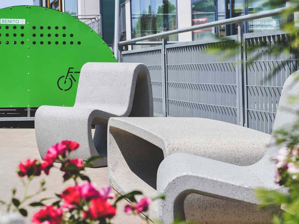 Diseño limpio y neutro de los bancos Petrus para instalarlos en todo tipo de entornos