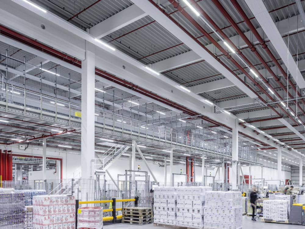 Para abordar estos problemas, la «logística verde» cobra relevancia, para reducir las emisiones de CO2 y adoptar soluciones led inteligentes para la eficiencia y el control. Un ejemplo palpable es el gigante minorista Rewe, que ha optado por la iluminación sostenible de Trilux en su nuevo almacén central.