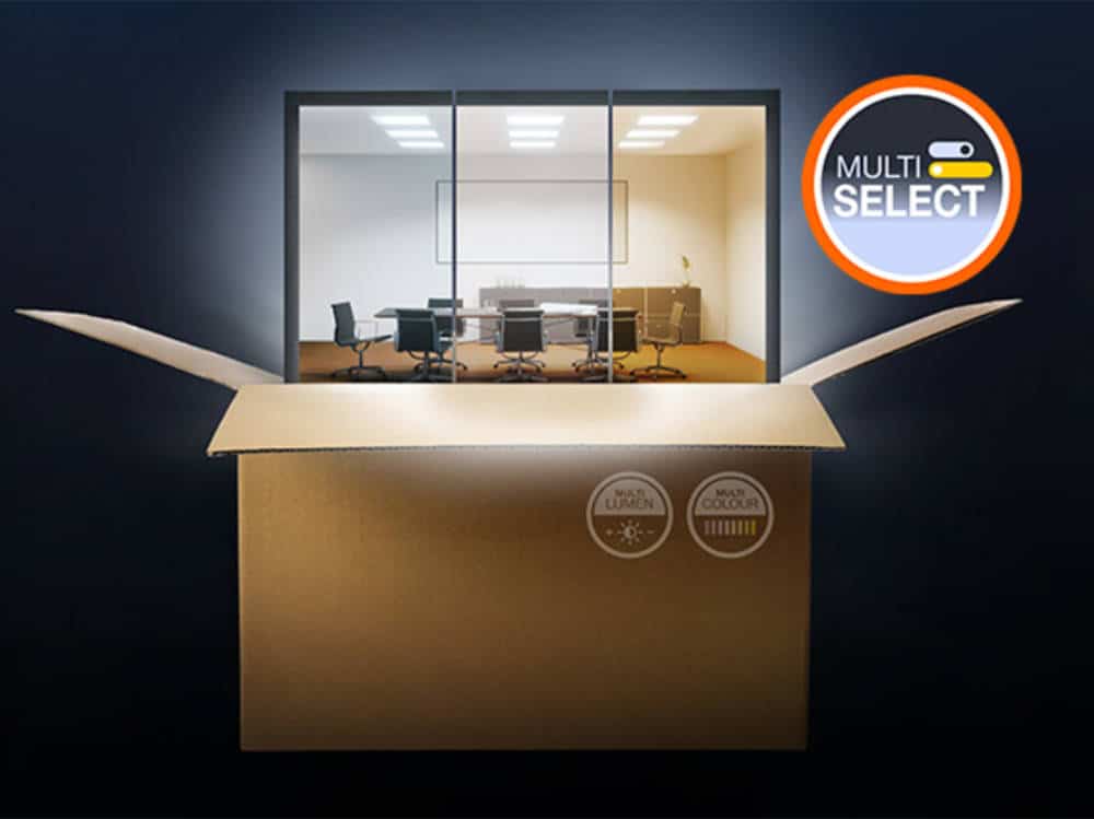 Con Multi Select, los profesionales y usuarios finales que las elijan podrán adaptar el flujo luminoso de salida y la temperatura de color en la propia luminaria.