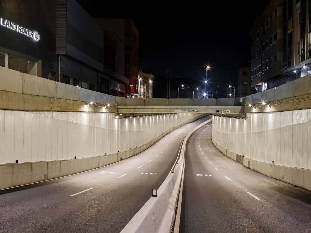 El nuevo alumbrado del paso subterráneo Sol y Mar proporciona una excelente luminosidad que asegura una guía visual perfecta para los conductores y una excelente uniformidad. La robustez de la solución instalada garantiza un paso subterráneo seguro, confortable, sostenible y con la última tecnología.