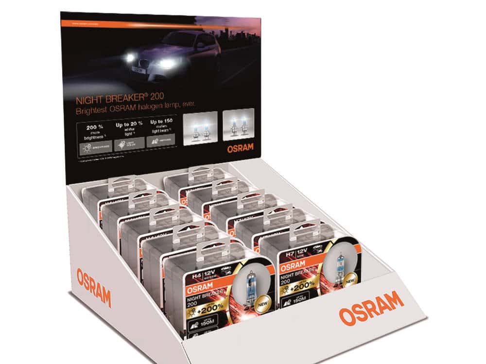 Cuando se trata de la iluminación del automóvil, hay una empresa que se distingue del resto y con el lanzamiento de Night Breaker® 200 es fácil ver por qué. Osram es el líder en iluminación de automóviles con una reputación de innovación pionera e ingeniería alemana de alta calidad. Pero no sólo la calidad de sus lámparas se ha ganado la confianza de los talleres de todo el mundo. El compromiso continuo de Osram de mejorar y ampliar toda su cartera de productos significa que los profesionales de la automoción también pueden ofrecer más valor a sus clientes. Este es el caso de Night Breaker® 200, que, gracias a su nuevo y atractivo expositor de mostrador, gana aún más visibilidad y protagonismo en el punto de venta.