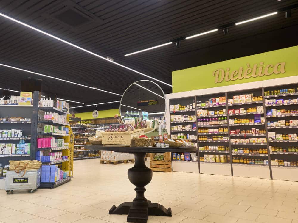 Los soportes para equipos con proyectores B.VeoTrack también se utilizan en la zona de panadería y en el departamento de frutas y verduras. Iluminan los productos de forma especialmente atractiva gracias a su alta reproducción cromática natural. Al mismo tiempo, los focos se integran perfectamente en el diseño de la tienda como parte del sistema E-Line Next led. Otra ventaja, es que la flexibilidad del sistema de iluminación en línea continua permite a Herbolario Navarro adaptar la iluminación rápida y fácilmente a las tendencias cambiantes del mercado.