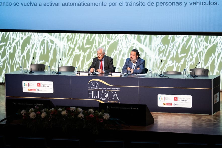 La clausura del XLIX Simposium Nacional de Alumbrado corrió a cargo de Fernando Ibáñez, presidente del Comité Español de Iluminación, y Rosa Gerbás, concejala de Desarrollo del Ayuntamiento de Huesca.